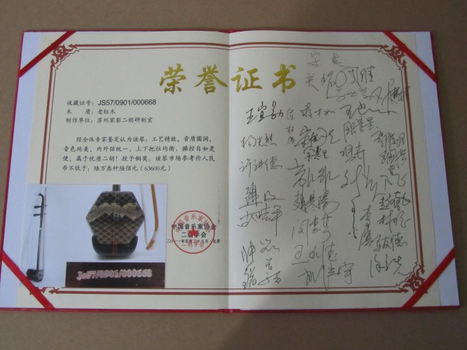 二胡制作大師丁家彭先生1949年出生樂器世家,17歲隨其祖父學(xué)琴藝,并深得精髓,其聰穎好學(xué),悉心鉆研與 探求二胡制作,博得同行的欽佩贊許,更得了許多知名演奏家的稱贊,充分認(rèn)識(shí)到二胡制作每個(gè)環(huán)節(jié),都對(duì)二胡制作都有影響力,因此對(duì)二胡的選材,選料,蟒皮都十分嚴(yán)格,二胡整體穩(wěn)定性良好,環(huán)境干擾影響極小。